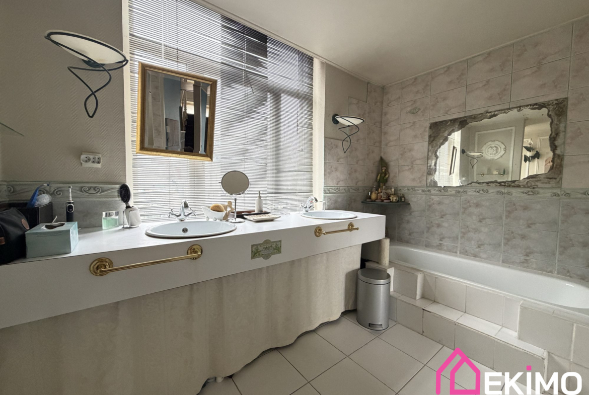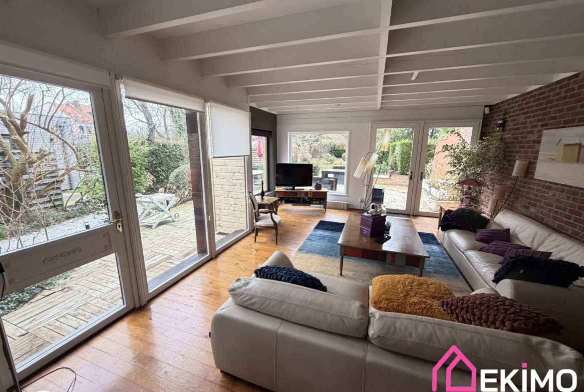 La cuisine aménagée et équipée est un véritable atout pour les amateurs de gastronomie. Profitez de la vue apaisante sur le jardin et les terrasses depuis les pièces de vie. La maison dispose de deux terrasses, parfaites pour des moments de détente en plein air.