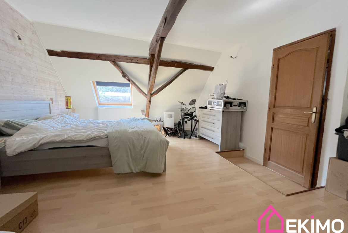 A l’étage, 3 chambres séparées (dont une avec dressing) et une grande salle de bains vous attendent. Les combles isolés avec ouverture offrent une surface supplémentaire pour une chambre supplémentaire, une pièce de jeux