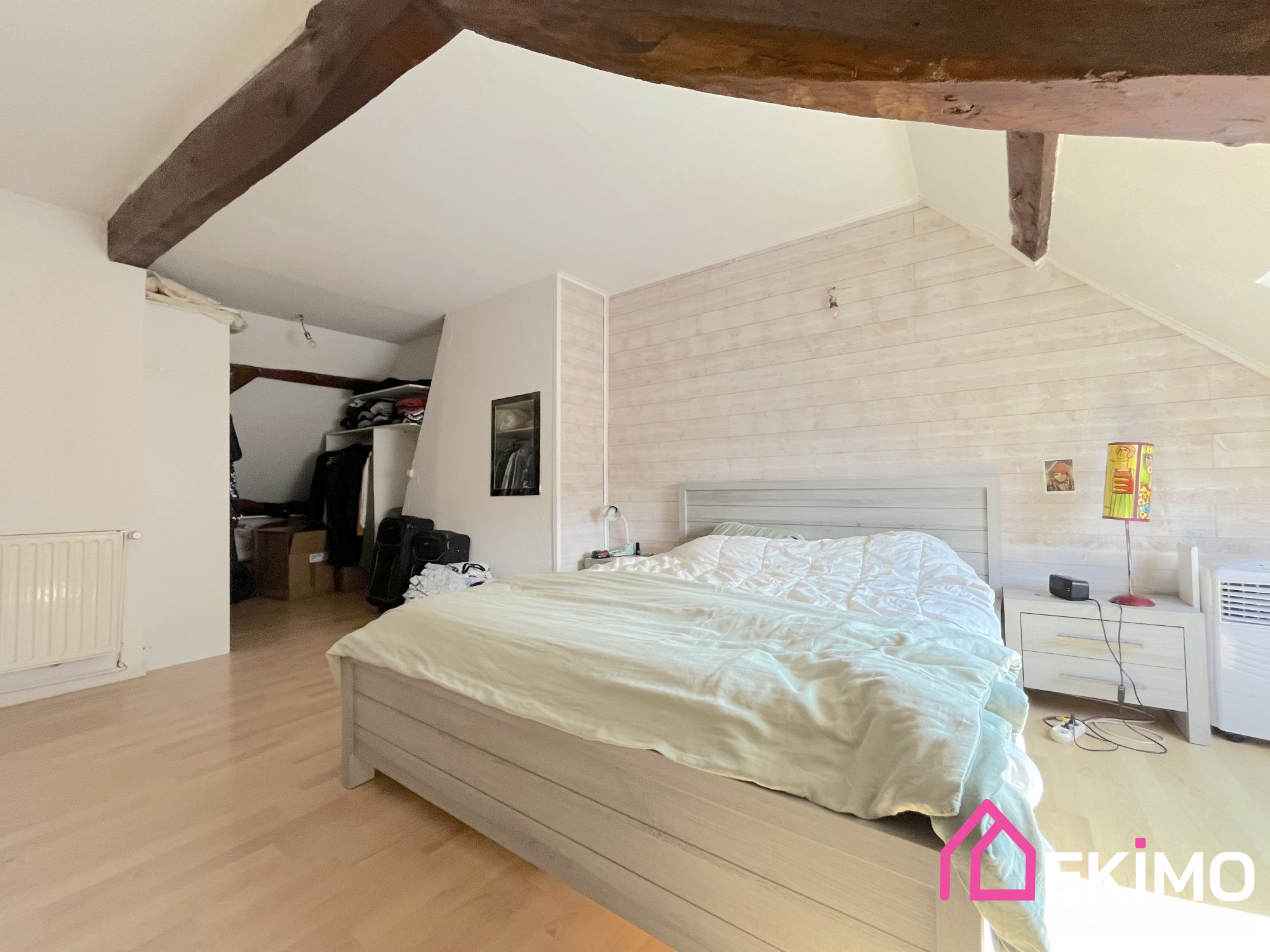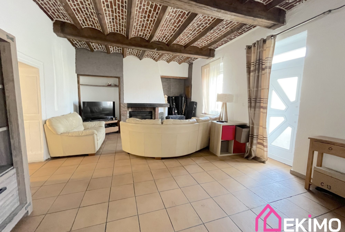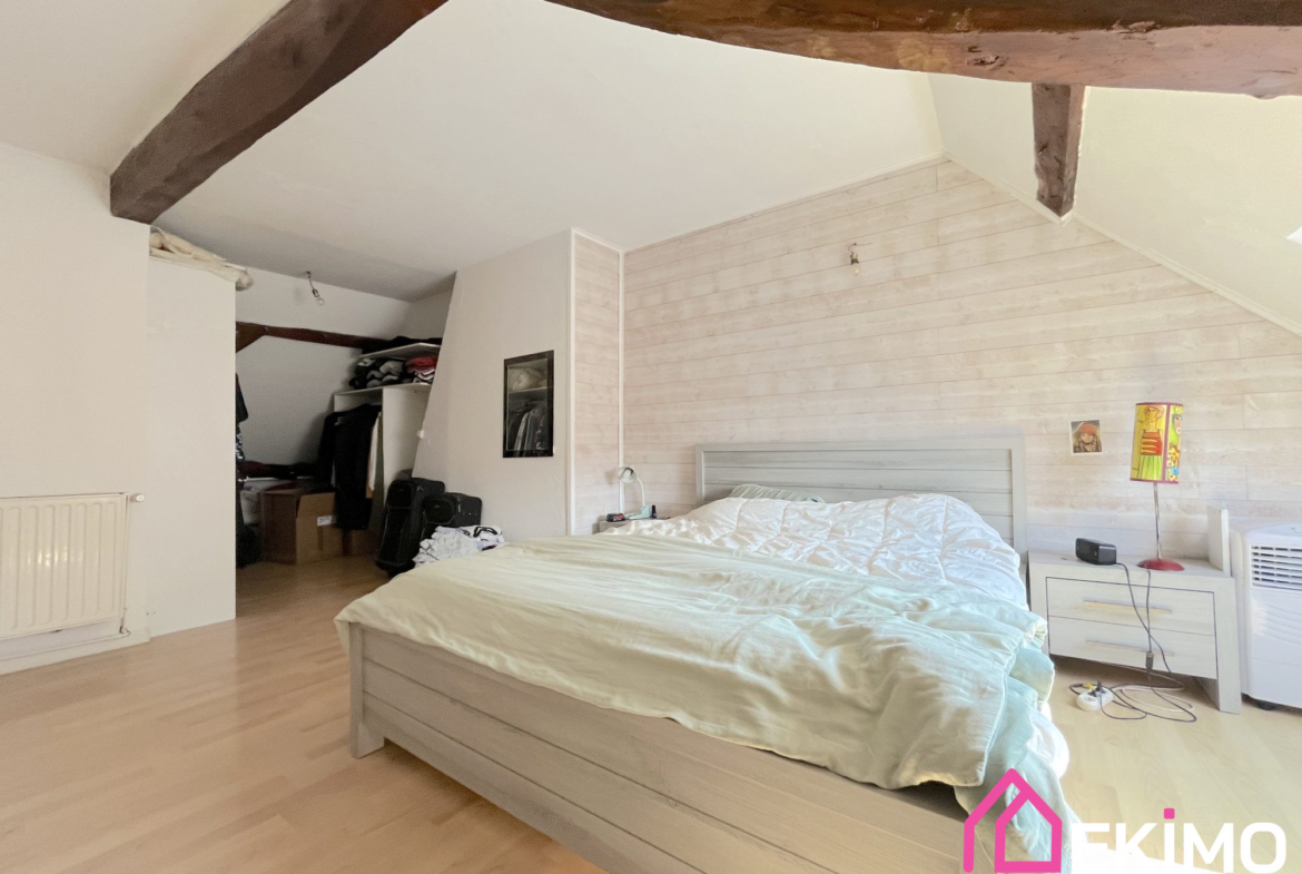 Cette maison mitoyenne d’un côté est chargée d’histoire avec ses poutres apparentes.